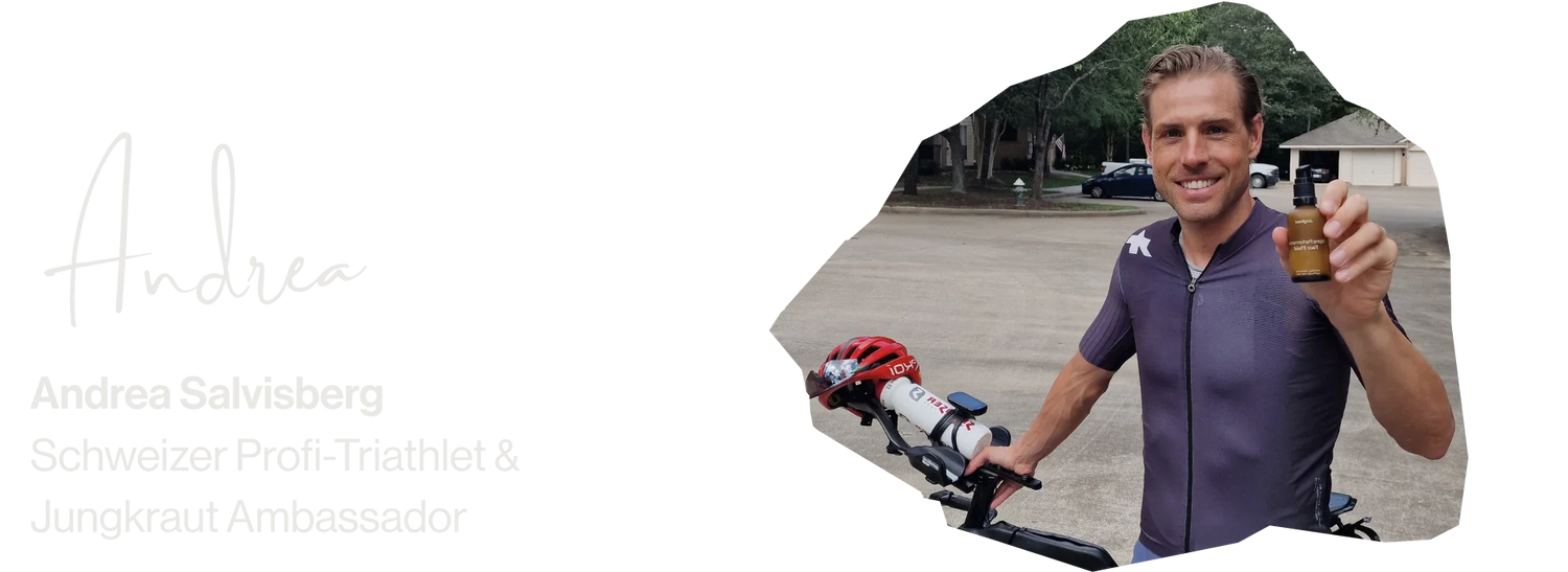 "As a triathlete, my skin is constantly exposed to extreme stress. Sun, water, friction and sweat challenge it every day. Jungkraut gives my skin the best it needs for quick regeneration and protection."