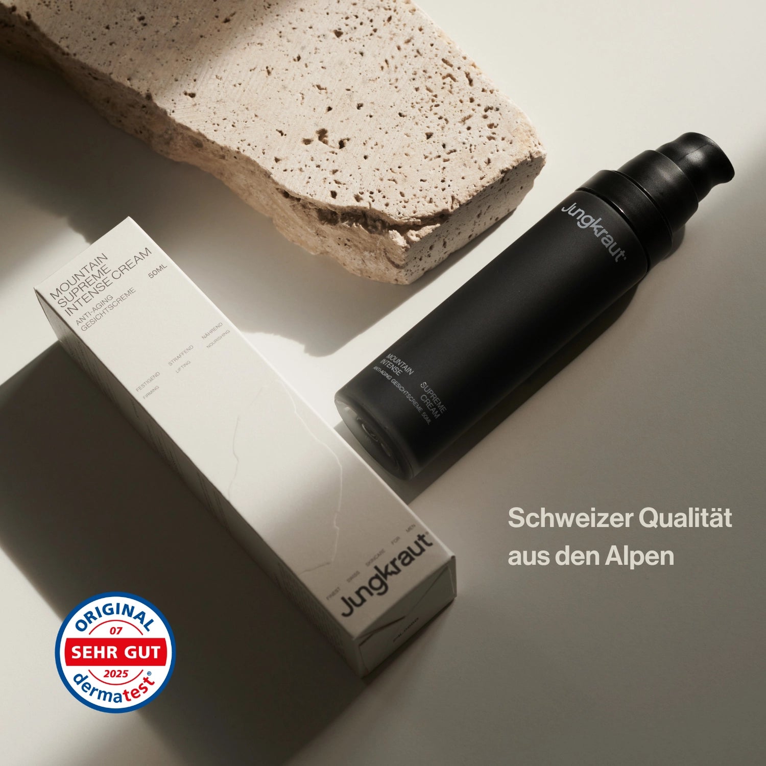 Weil Jungkraut mehr kann – und kein Standard ist. Unsere natürliche Gesichts- und Körperpflege für Männer setzt auf innovative Wirkstoffe in einer Reinheit und Konzentration, wie sie sonst nur in echter Premiumpflege zu finden sind – kombiniert mit alpinen Pflanzenextrakten, hochmodernen Formeln und maximaler Wirkung ohne Füllstoffe. Wir produzieren in kleinen Chargen in der Schweiz, legen Wert auf dermatologisch geprüfte Verträglichkeit, natürliche Duftstoffe statt synthetischer Parfüms und nachhaltige, hochwertige Verpackungslösungen. Dazu kommen direkter Kundenkontakt, ehrlicher Support und ein Qualitätsanspruch, der bleibt. Kurz gesagt: Jungkraut ist kein Discounterprodukt, sondern Pflege mit Haltung – für Männer, die wissen, was ihnen gesunde, starke Haut wirklich wert ist.